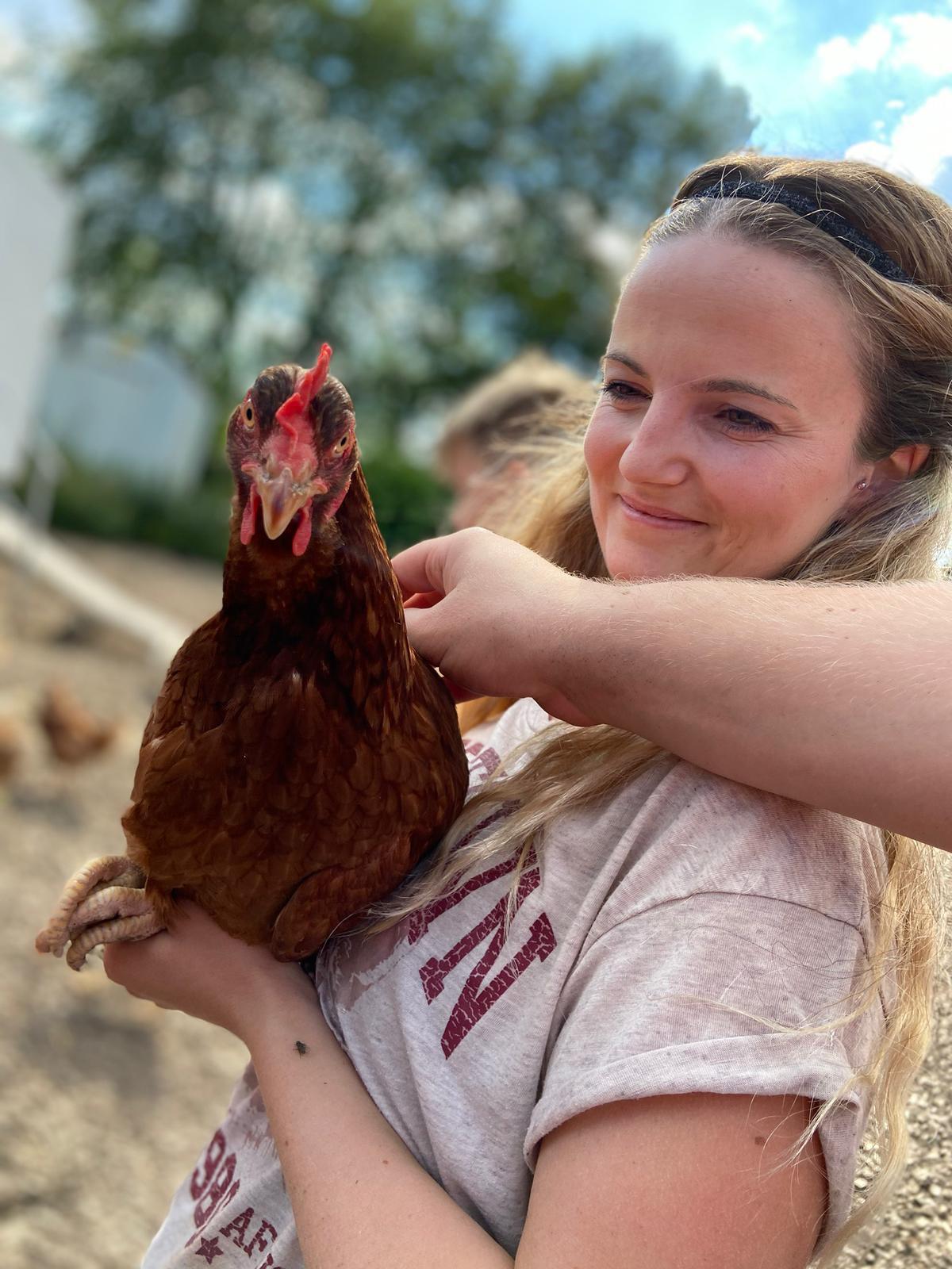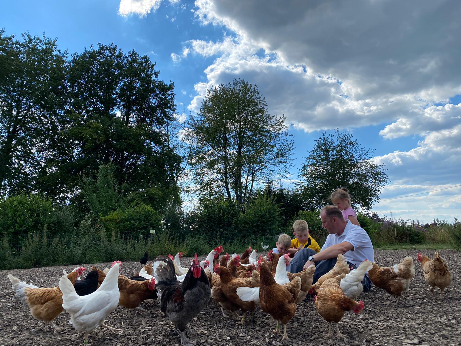 Natürlich füttern wir auch die Hühner aus der Hand und sammeln die Eier ein.